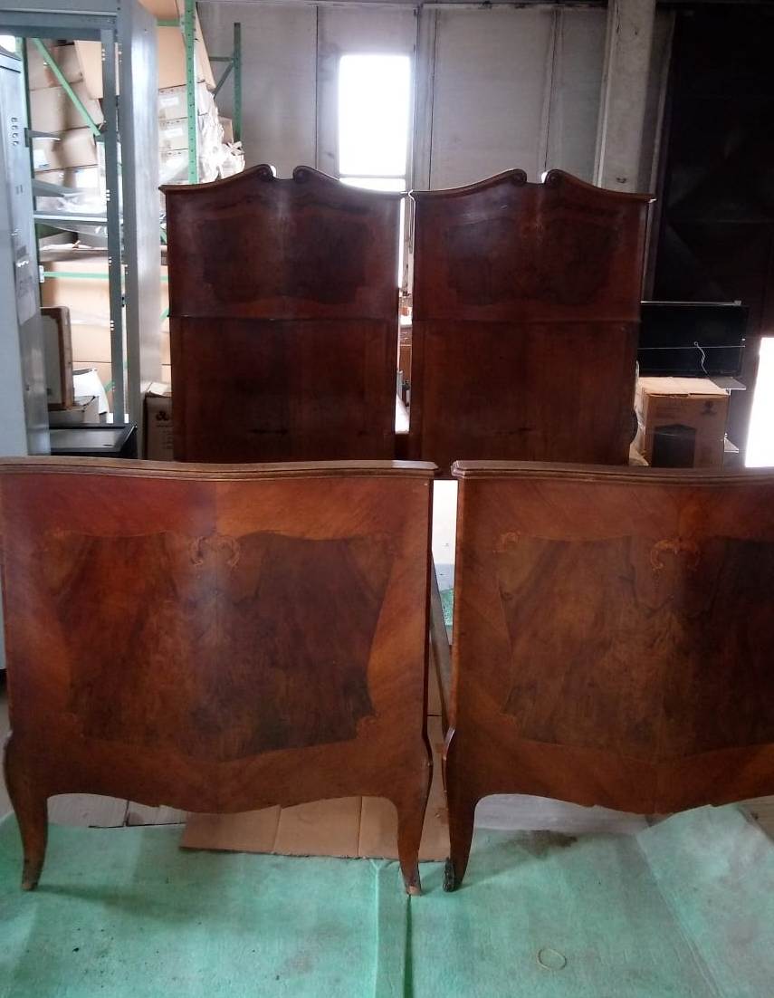 LETTI INIZIO 900 COMPLETI DI TESTIERA E PEDIERA IN LEGNO E IMPIALLACCIATURA NOCE CON INTARSI