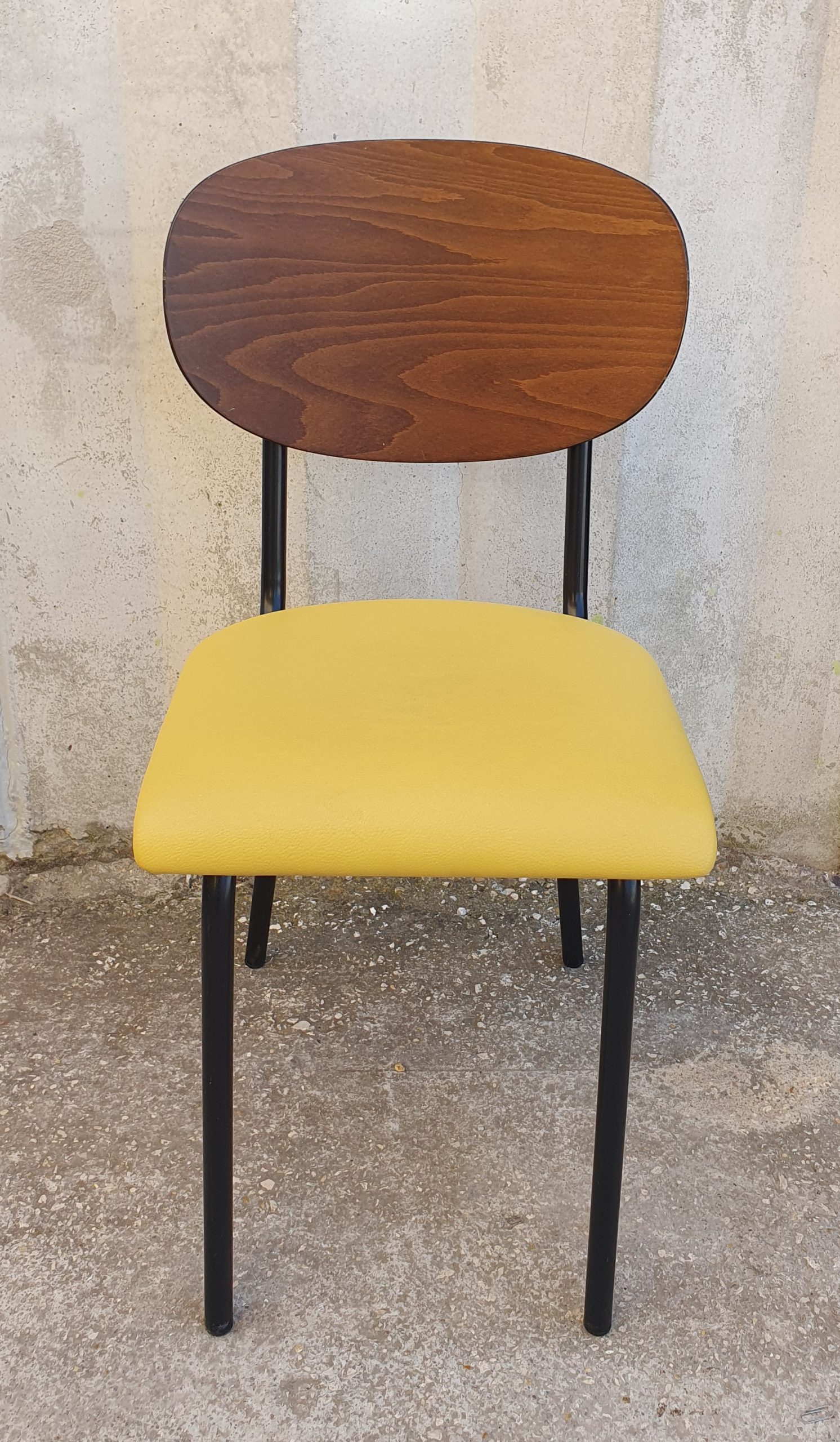 SEDIA CON SEDUTA IMBOTTITA GIALLA E SCHIENALE IN LEGNO