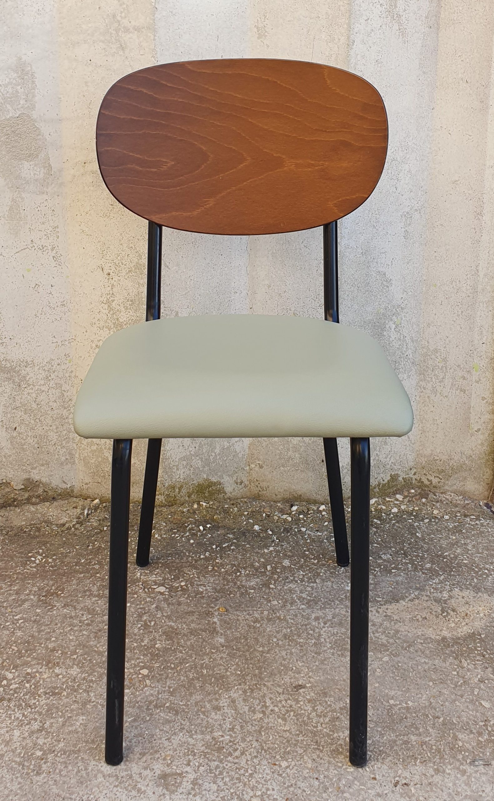 SEDIA CON SEDUTA IMBOTTITA VERDE E SCHIENALE IN LEGNO